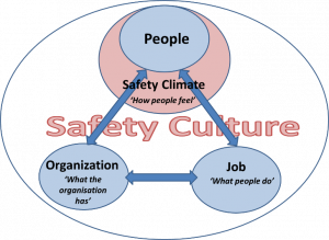 ‘produk nilai-nilai Pribadi dan kelompok, sikap dan keyakinan, kompetensi dan pola perilaku yang menentukan komitmen, dan gaya dan kecakapan, manajemen K3 organisasi’.